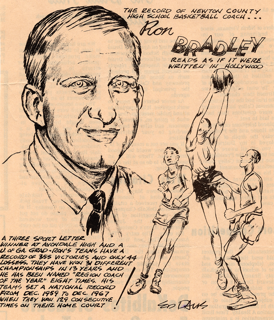 Bradley made a name for himself long before I was born. He enjoyed a standout playing career as a multi-sport athlete at the University of Georgia, where he led the school’s baseball team to back-to-back SEC championships (1954–55), then set out on a remarkable journey from the bench that would span nearly half a century. Bradley started his coaching career at Newton High School, where he guided the boys’ basketball team to 430–68 record, 14 region titles and the 1964 state championship across his first 17 seasons. His run included a national record 129-game home winning streak that still defies belief. Bradley left Newton following the 1974–75 season and went on to coach at several other stops, including George Walton Academy in Monroe and Loganville High School in Loganville. The wins and accomplishments continued to pile up, as monumental success followed him everywhere he went.