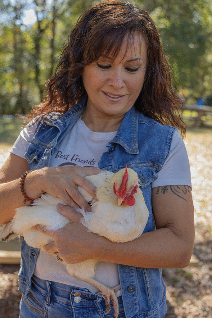 Fernandez had never experienced farm life firsthand. She spent part of her childhood in Buenos Aires, Argentina, and later in an industrial area of New Jersey, where she often felt out of place. It was not until later that she discovered what felt truly natural to her: life on a farm. In the early 2000s, Cecilia moved to Georgia, where she met her husband and shared her dream of one day opening a sanctuary. After years of searching, the dream became a reality in 2015 when the family found a five-acre property in Oxford. It would soon become Best Friends Farm, a nonprofit dedicated to rescuing, rehabilitating and caring for animals who have endured neglect or abuse.