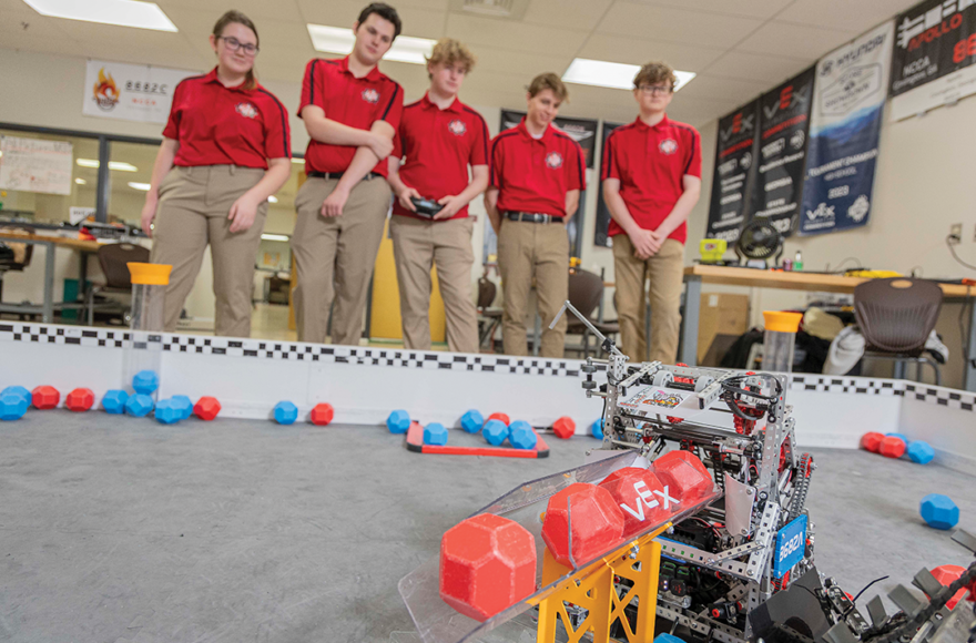 There are many sides to preparation. In VEX, tournaments require scouting, evaluating teams, participating in judges’ interviews, keeping a competition robot running and speaking with potential alliance partners for elimination rounds. Planning and developing strategies for navigating all these situations truly separates prepared teams from their ill-prepared counterparts. Preparation has certainly paid off for the NCCA team. It has become one of the most successful squads in Georgia history, accumulating awards while winning both regional and local tournaments. In 11-plus competitions, 8682A has amassed eight excellence awards, seven tournament championships, four robotics skills awards and a design award. It has qualified for the VEX Robotics World Championship in April.