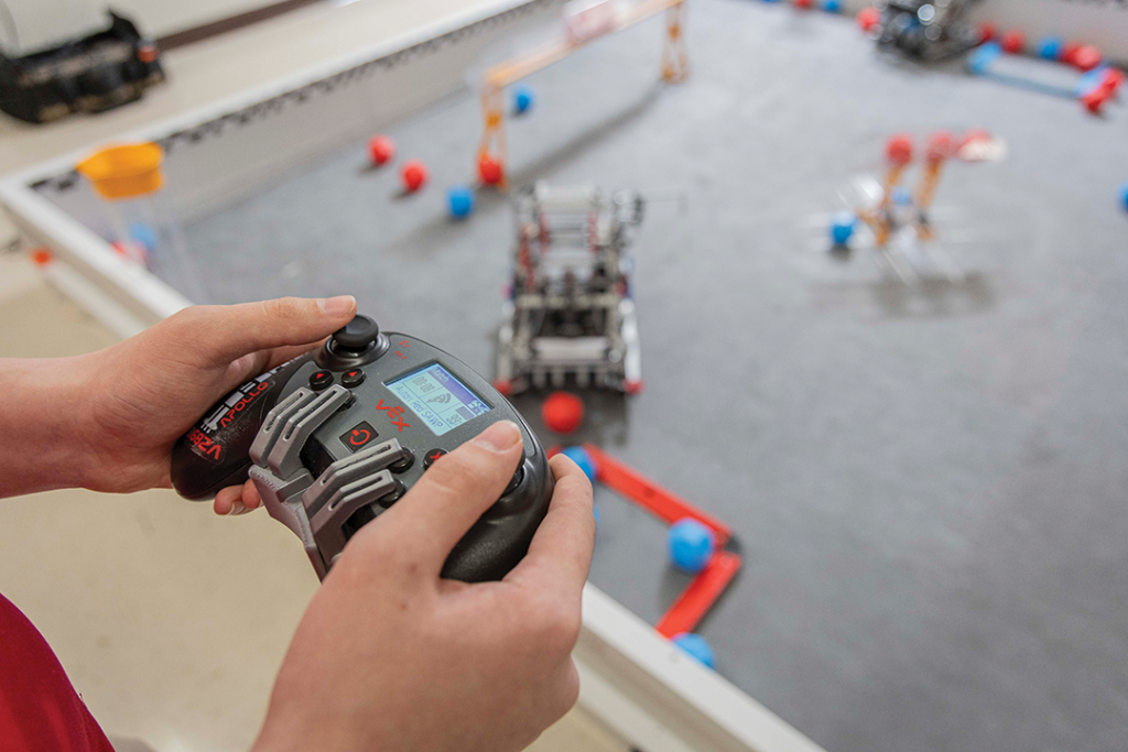 VEX Robotics reveals a completely new game challenge each year. It is the task of the robotics teams to analyze the game, create a strategy to play it, design a robot capable of executing that strategy and build and program their custom design. They test themselves in local competitions across the state, as well as in regional contests called signature events, which are held throughout the nation. VEX Robotics is a premier robotics platform for pre-K through university students, focusing on STEM education through designing, building and programming robots.