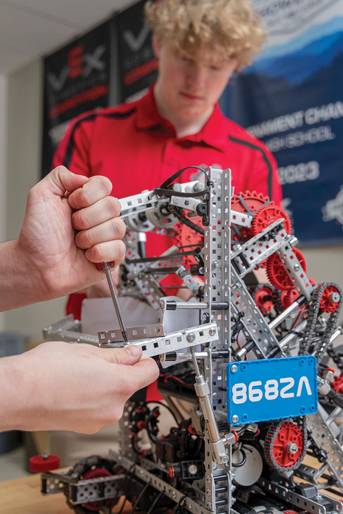 “To give you an idea of the scope of work Team 8682A has taken on, they have created nearly 900 pages of documented evidence spanning three different robot designs,” Pitts said. “Moreover, the time and energy these students devote to their sport is impressive. Early in the season, team members arrived as early as 6:30 a.m. before school to work on their robot. They stay after school daily until 5 p.m. They have taken robots and competition fields home over breaks. They have worked tirelessly and selflessly to create not only a great robot but what I describe as a great product.”